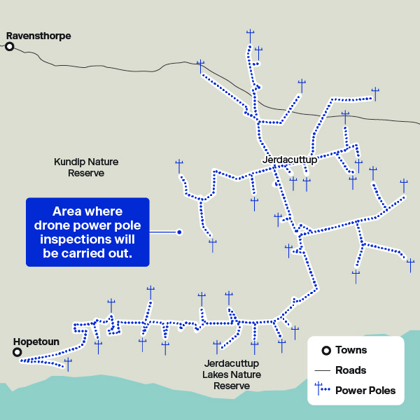 As part of our ongoing commitment to improve the safety, reliability and efficiency of the electricity network, we’re trialling two dronebased power pole inspections across the Esperance and Hopetoun regions.